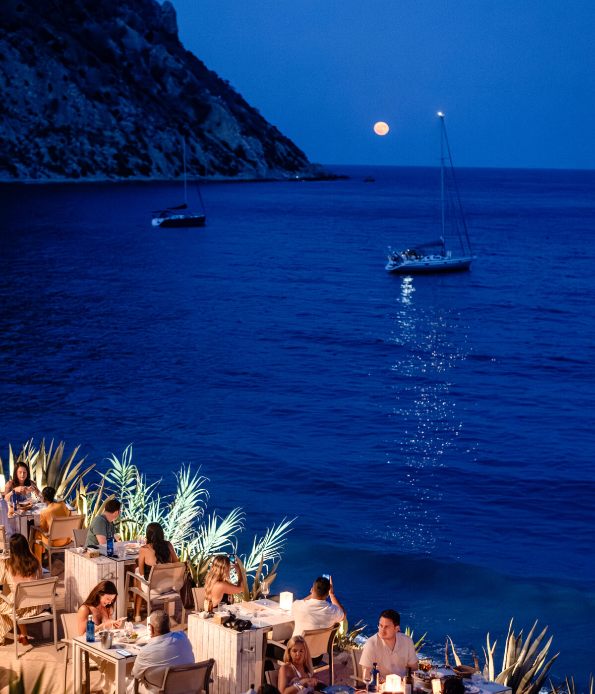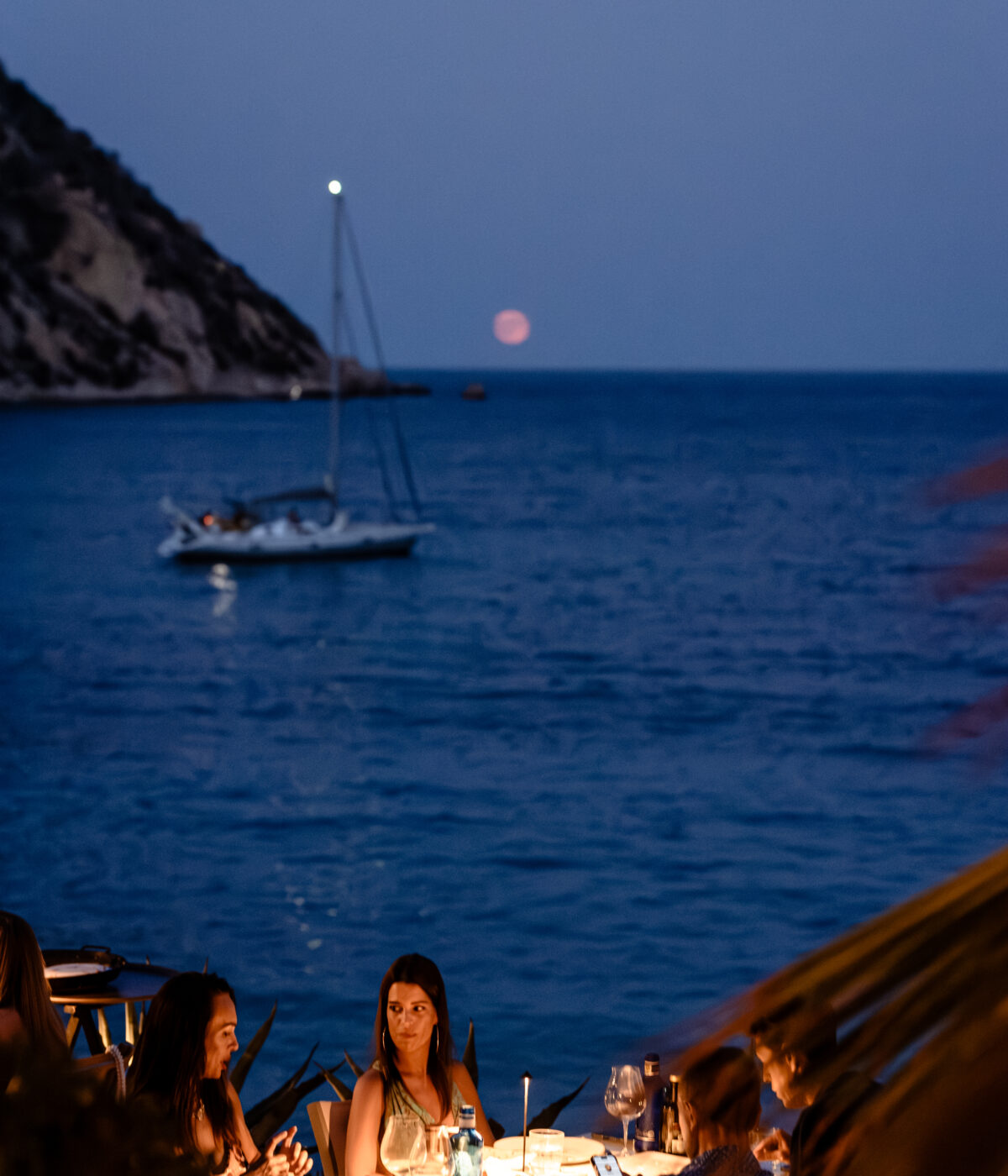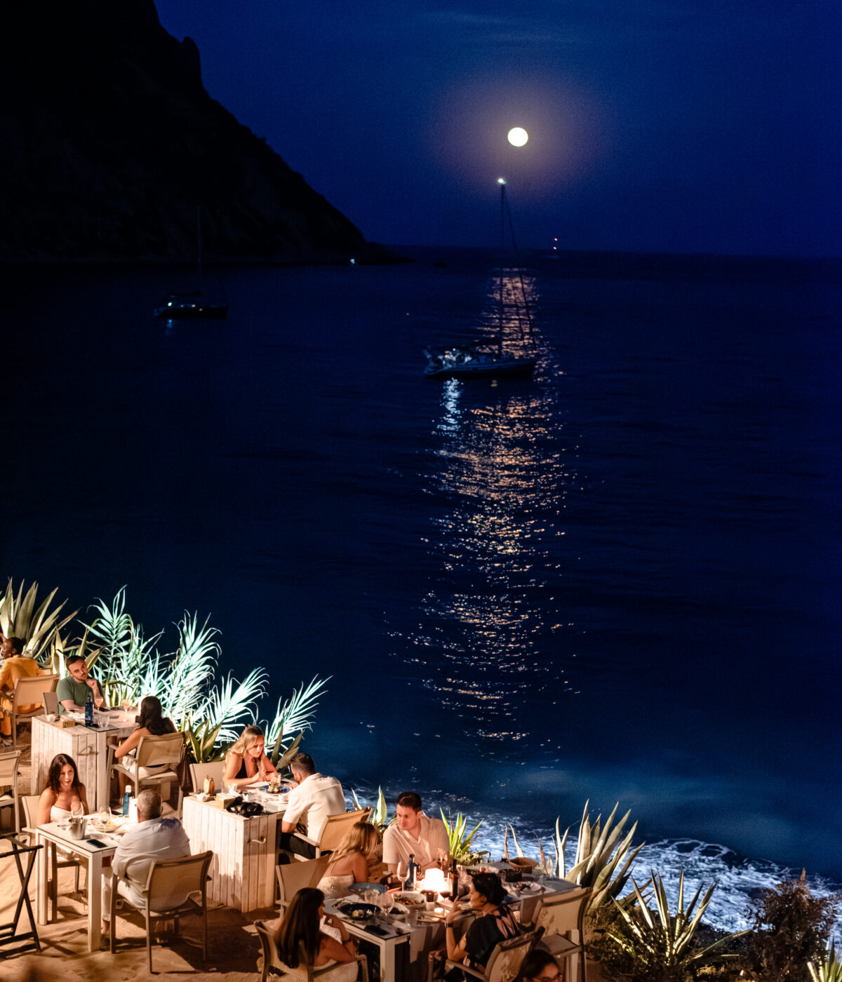 Lejos de los caminos y enclavado en los acantilados que se elevan sobre la cala de Sol d’en Serra, Amante cuenta con uno de los lugares más sorprendentemente privados de la isla desde el que apreciar el espectacular este acontecimiento de la naturaleza.